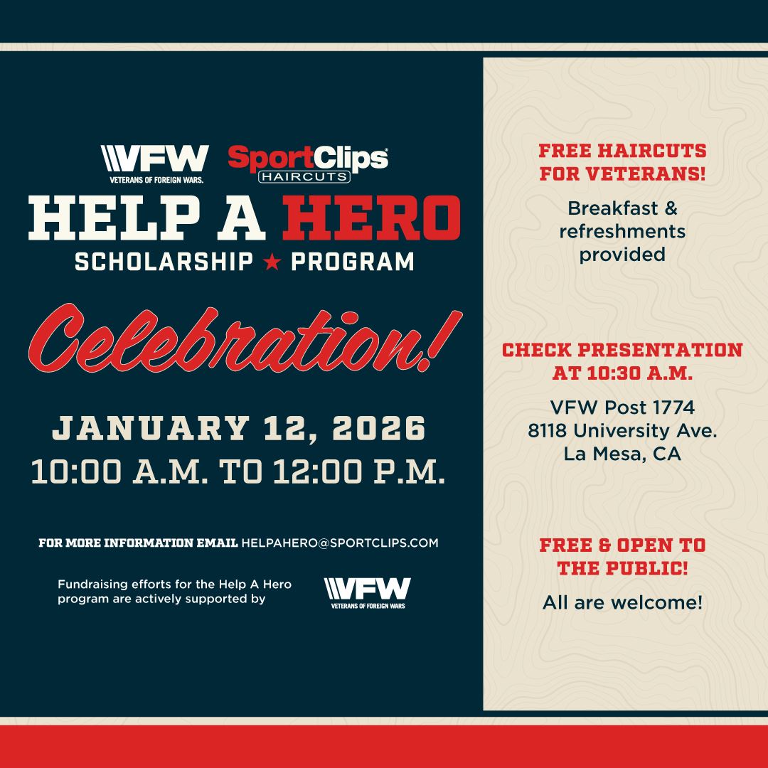 Since 2013, Sport Clips has been the primary supporter of the VFW’s "Sport Clips Help A Hero Scholarship" program, which provides scholarships for service members and veterans for use at post-secondary schools and trade schools. To date, we have awarded more than 3,500 scholarships totaling more than $16 million.